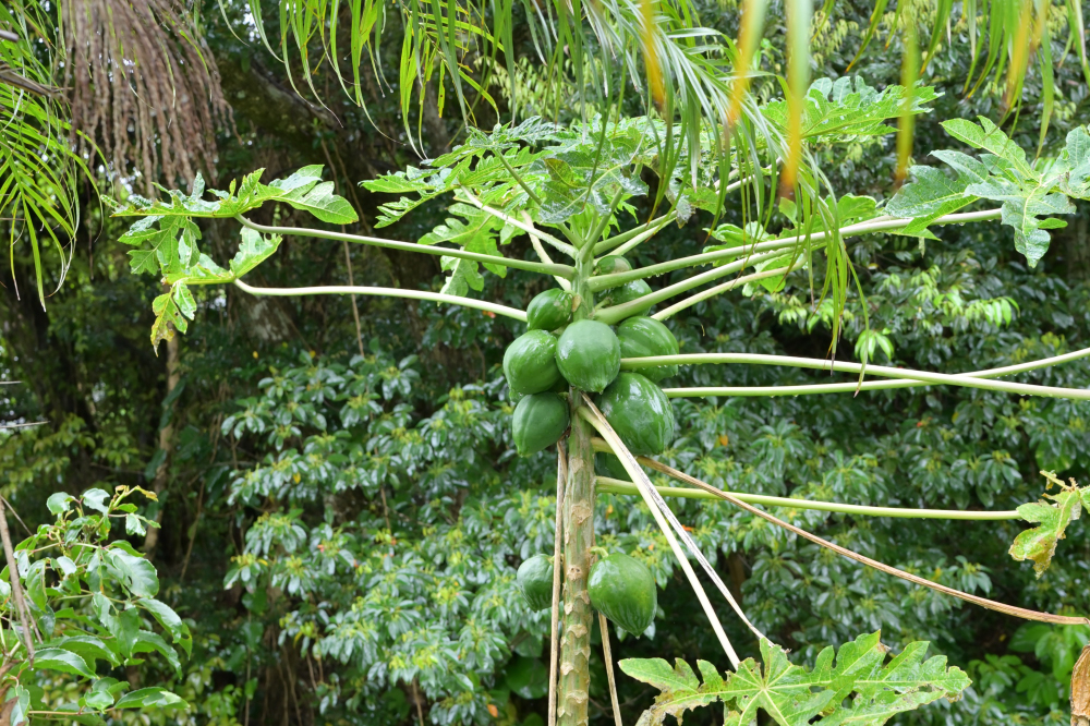お店の前の広場にはパパイヤの木がお茂っていて、そのそばのテーブルでコーヒーを飲めるようになっている。